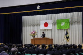 4月27日(火)は本校の創立記念日です。126年周年を迎えた今年度は、感染症対策のため各教室で放送を聴く形で式典を行いました。大崎校長の式辞では、生徒向けに創立当初の写真や沿革資料が配布され、126年の長い歴史を振り返りました。